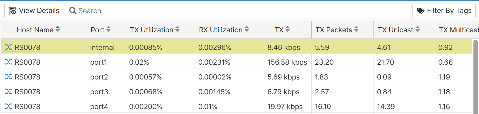 - TX Utilization—Percentage of bandwidth usage for transmitted traffic