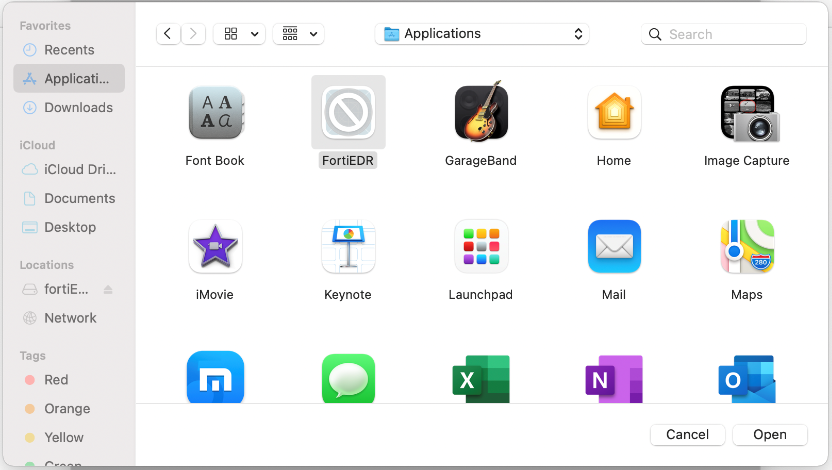 Click Applications, select FortiEDR and then click Open.
