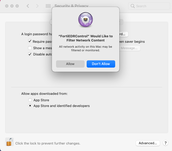 To install a FortiEDR Collector on macOS that is running with Big Sur (version 11) or above: