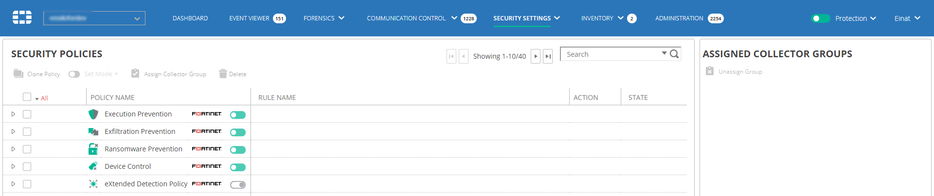 - Protection: FortiEDR enforces its active exfiltration prevention policy that blocks all connections that violate the relevant FortiEDR security policy rules.