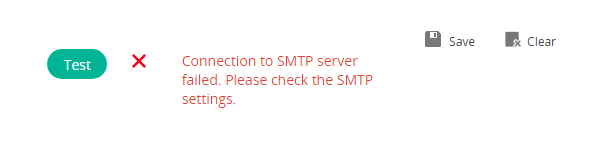 - In the SMTP area, click Test. An error message displays if there is no connectivity to the server.
