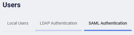 - In the Administration > Users page, go to the SAML Authentication tab.