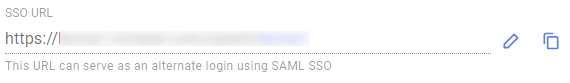 SAML Enabled Check this checkbox to enable SAML authentication in FortiEDR. SSO URL Specify the URL to be used by users to log in to FortiEDR. If necessary, you can edit the suffix of this URL (shown in green) by clicking the Edit button