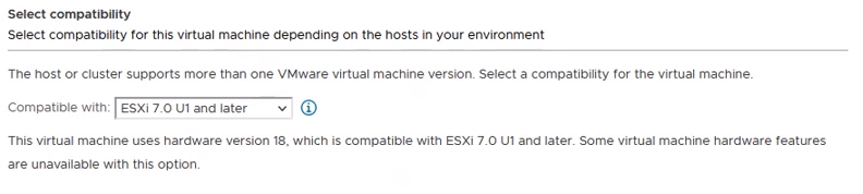 - In the Select Compatibility step, select ESXi 7.0 U1 and later and click NEXT.