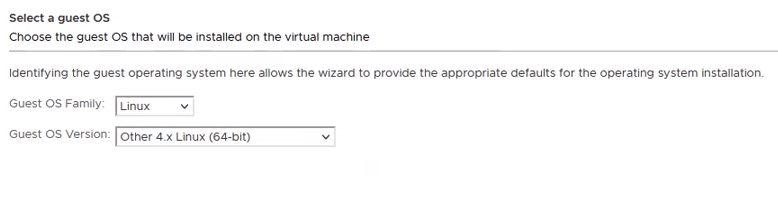 - In the Guest OS version field, select Other 4.x Linux (64-bit).