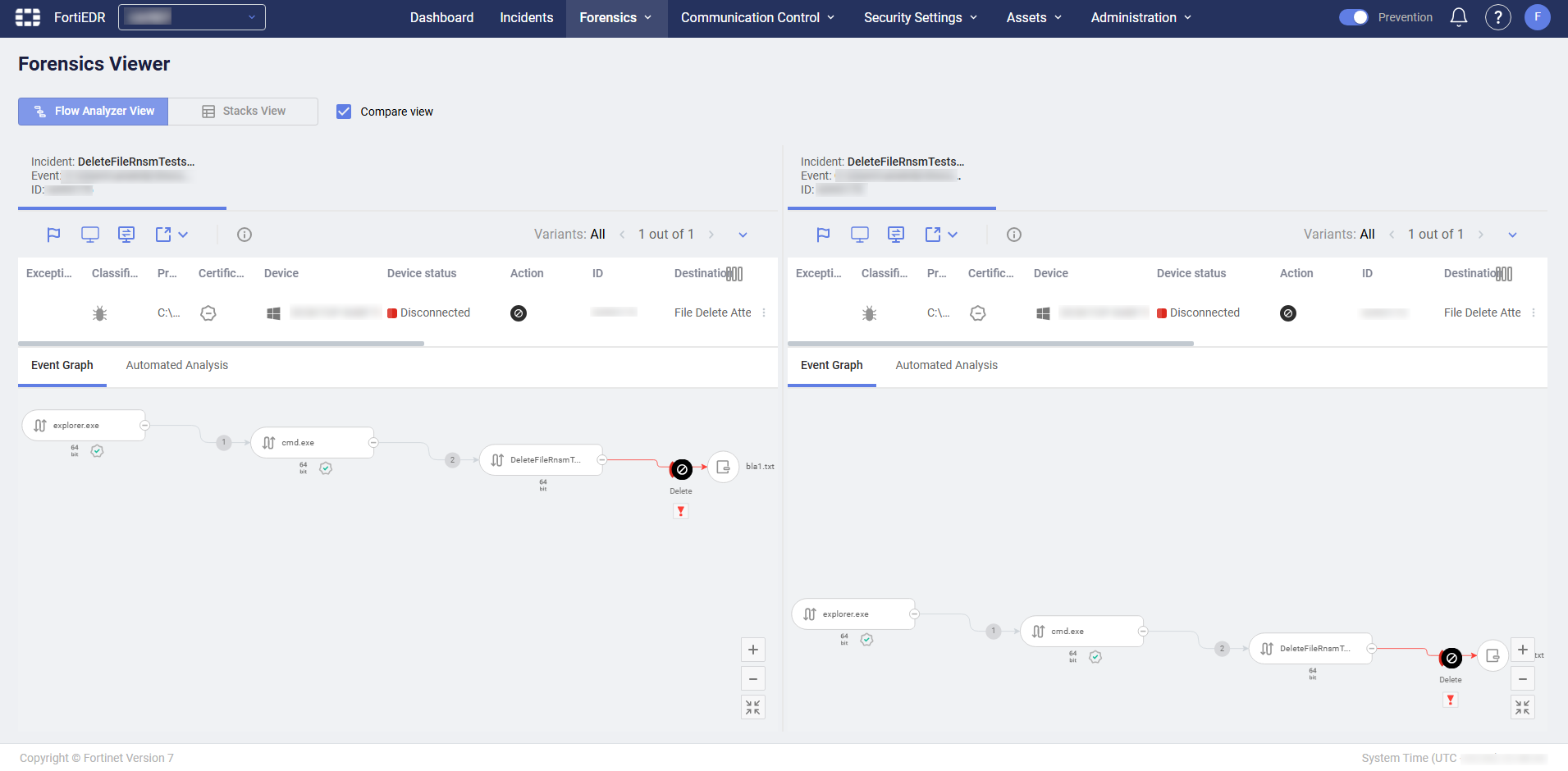 The Compare view enables you to display two views side-by-side. They can both be either Flow Analyzer view or Stack view.