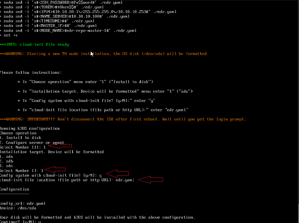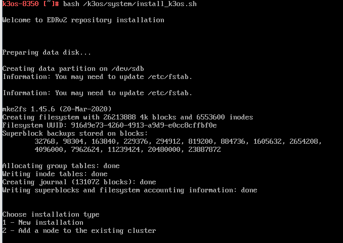 bash /k3os/system/install_edr2.shSelect init (1) for a new installation.