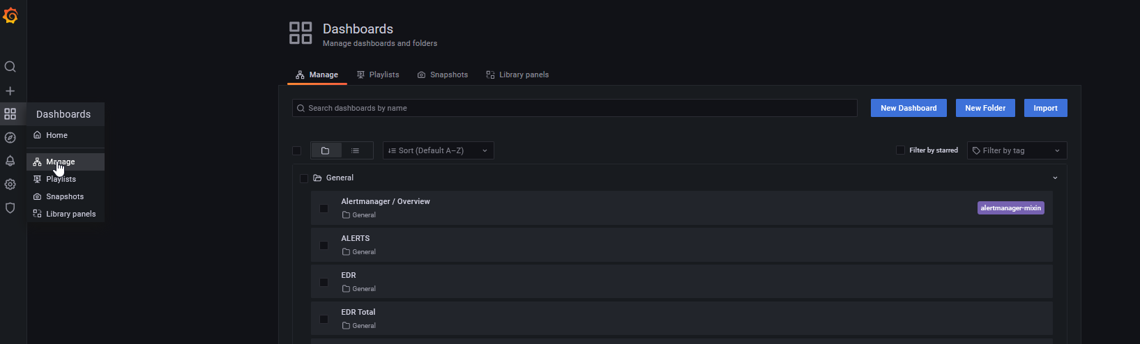 - Open the Alerts dashboard to view alerts triggered by the Threat Hunting Repository monitoring system.