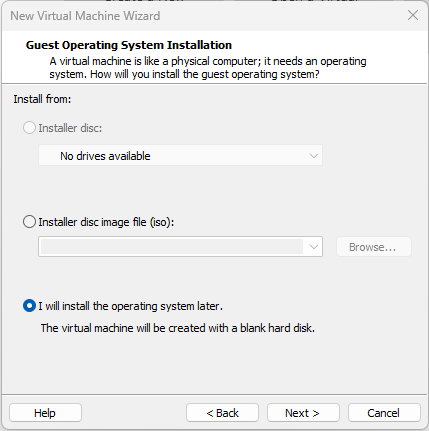 - Create a new virtual server by selecting File > New Virtual Machine.