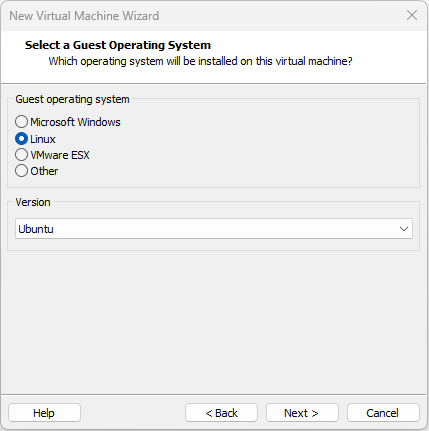 - Select the Linux radio button. In the Version field, select Ubuntu and click Next. Alternatively, you can select a different generic Linux 64-bit in the Version field.