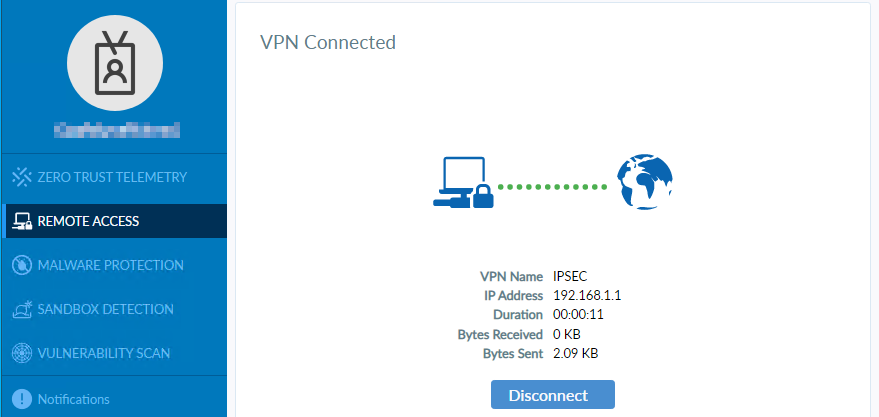 After the profile changes sync to the endpoint, it autoconnects to the IPsec VPN tunnel.