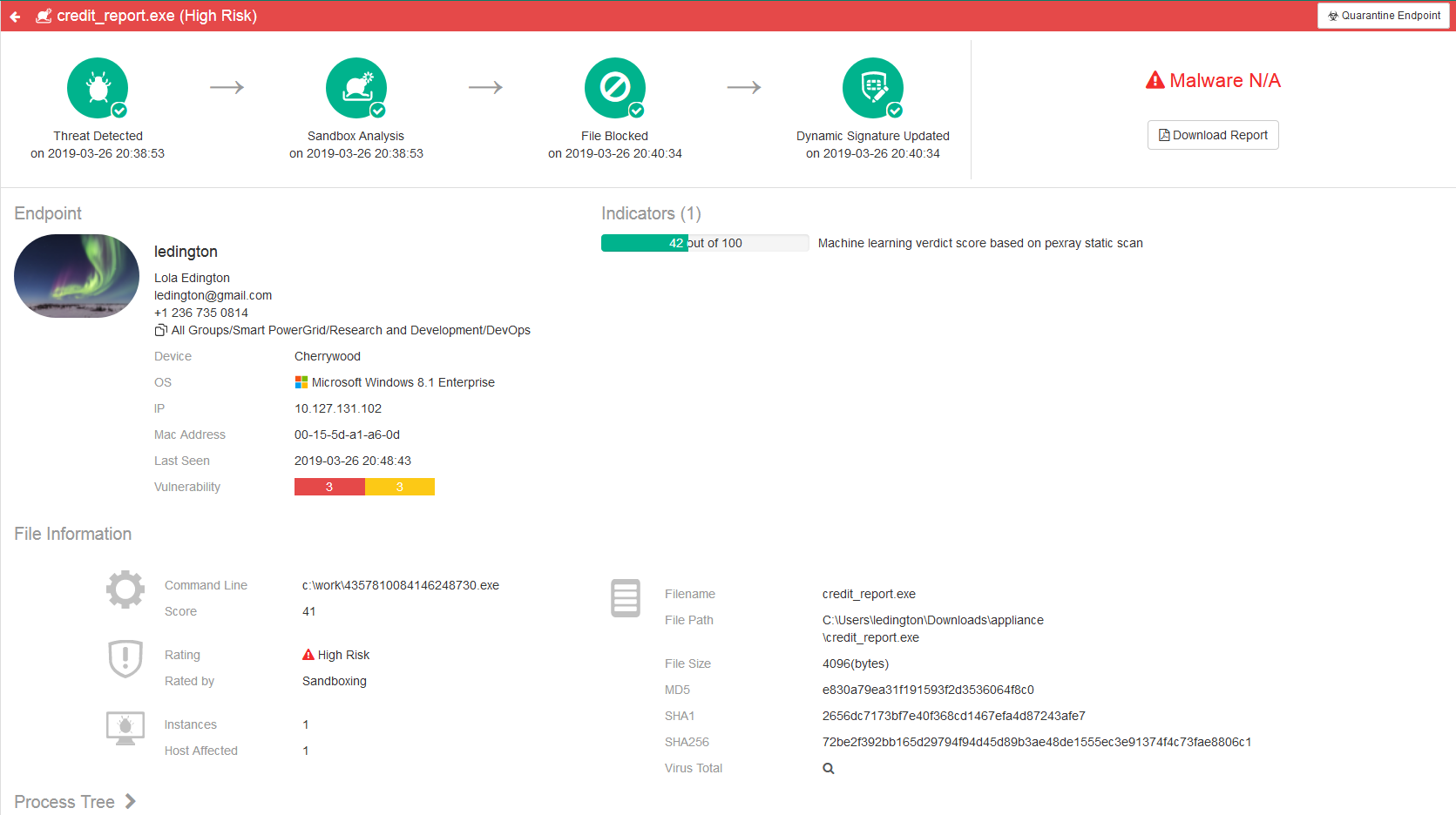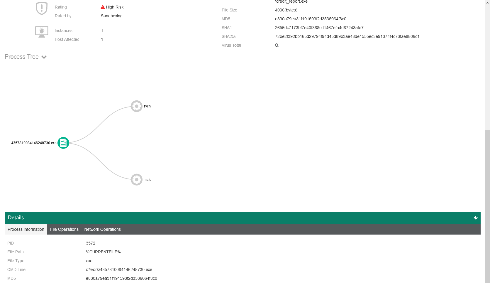 - On the Sandbox Events tab, click the magnifying glass icon beside the desired Sandbox event. EMS displays a detailed report about the Sandbox event.