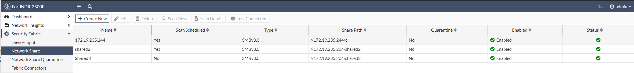 - Go to Security Fabric > Network Share.