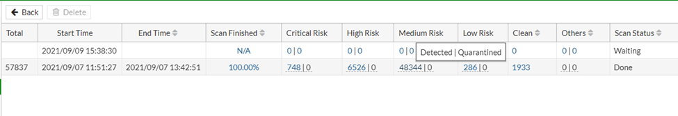 When enabled, FortiNDR will create a new folder <Network Share Profile Name>_<Scan Task ID> in the sanitized location for each scheduled scan.