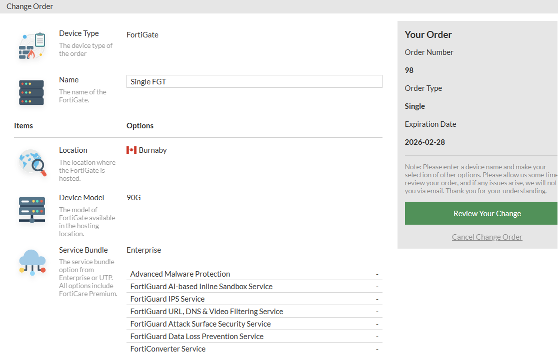 Contracts can be edited on the Devices and Orders pages. Due to the nature of contracts, only certain fields can be edited, such as the device name and security groups.