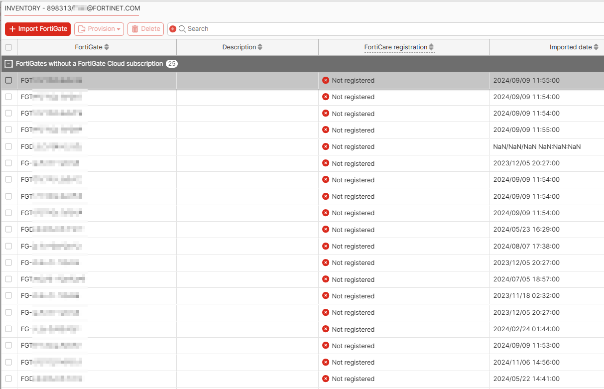 - On the Inventory slide, click Import FortiGate.