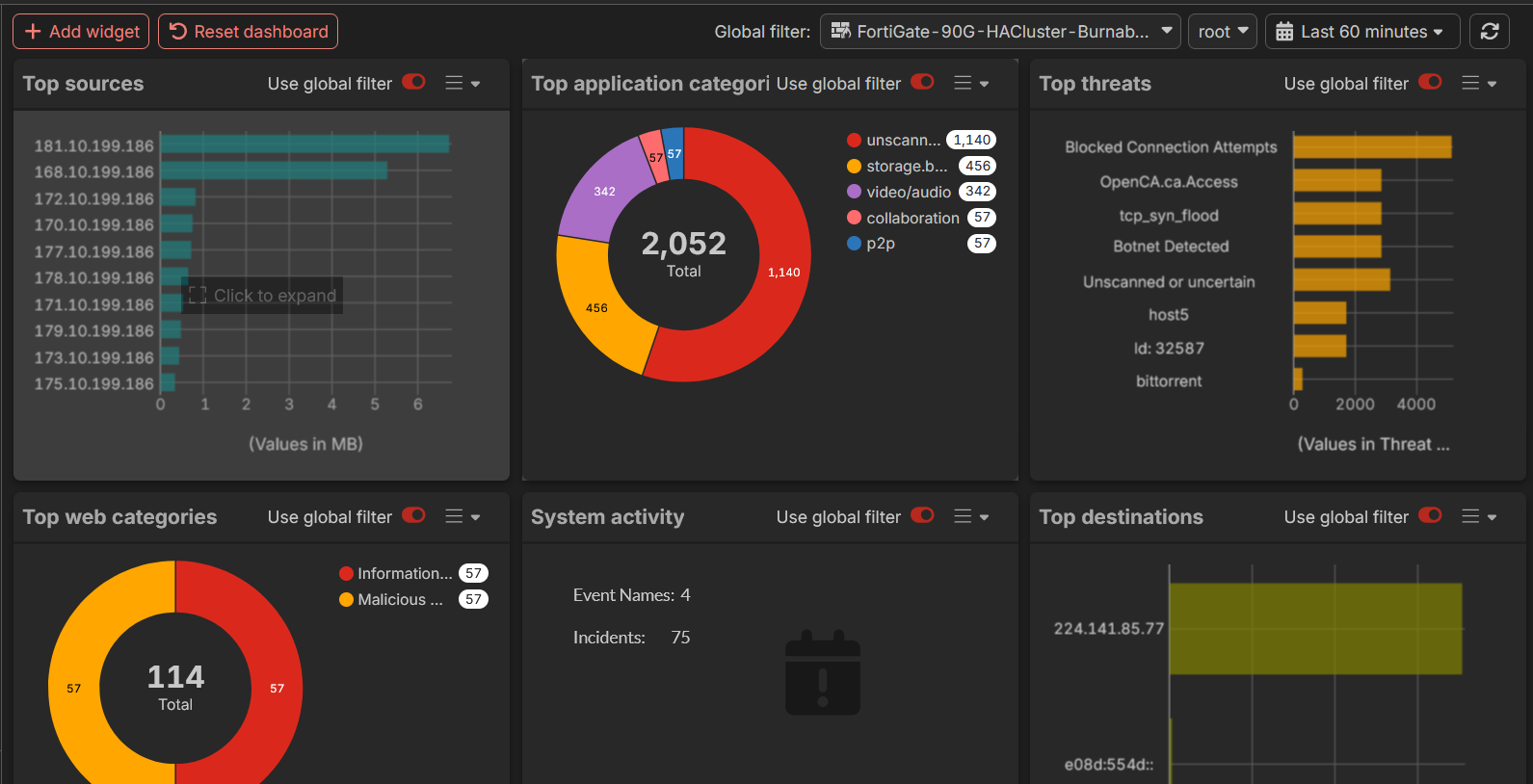 FortiGate Cloud contains the following dashboards: