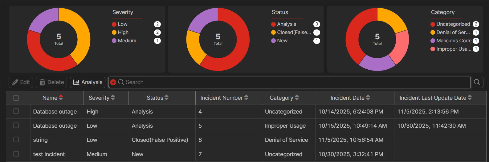 Select an incident and click Analysis.