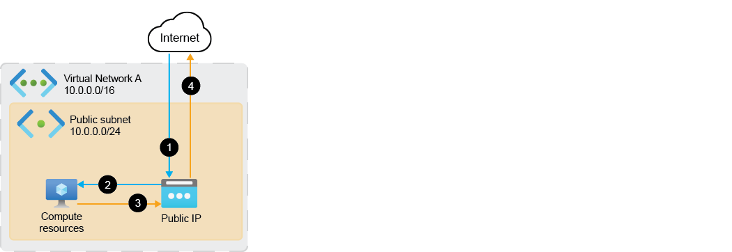 Public IPforwards the traffic to the workload resources inPublic Subnet(10.0.0.0/24). -