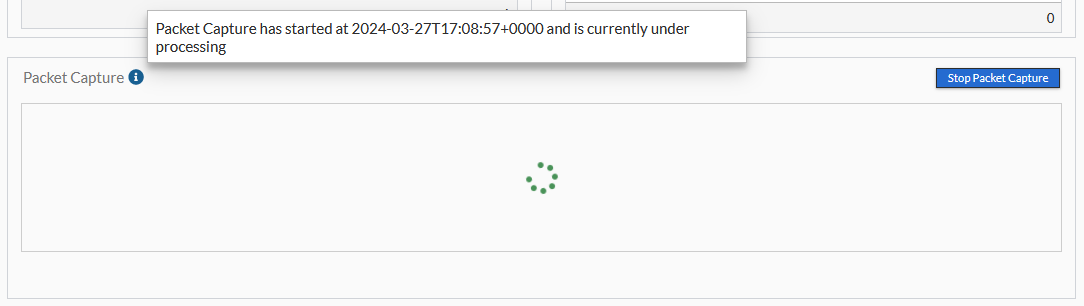 Packet capture starts. Packet capture will run for five minutes or until you click Stop Packet Capture.