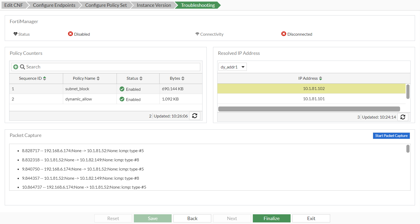 To troubleshoot a deployed FortiGate CNF instance: