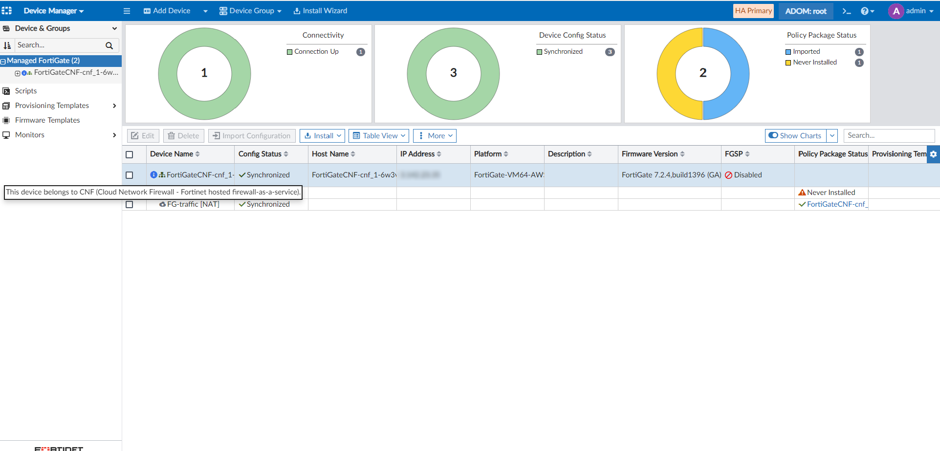 Click Finish. The FortiGate CNF instance is added to FortiManager. There may be a short delay before the device is available.