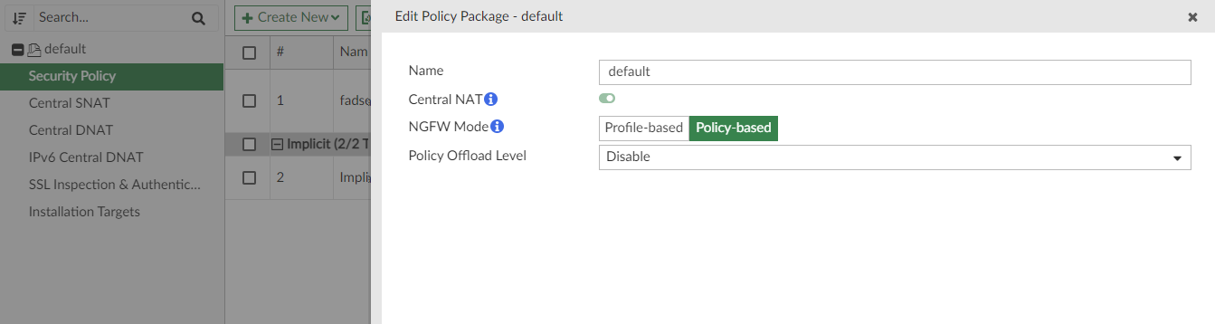 FortiGate CNF only supports profile-based NGFW mode policy packages.