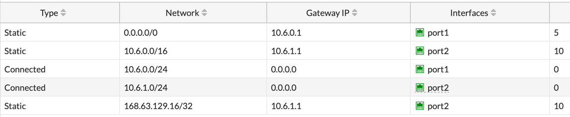 - There is also a route out port2 (also the trusted/internal interface) with the VNET prefix as the destination. This provides a route to any additional subnets that may be created.