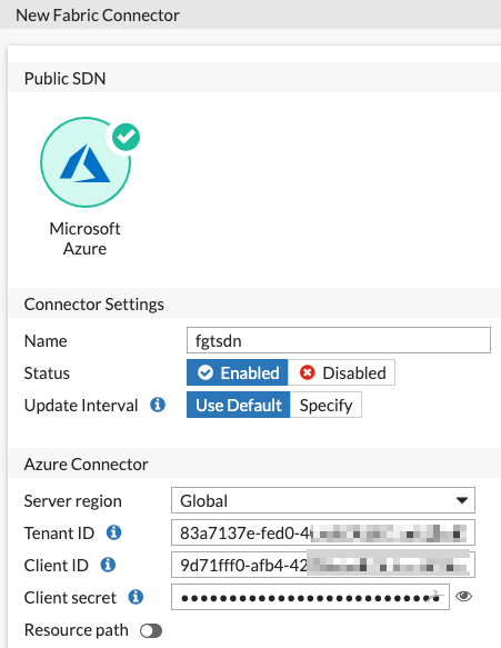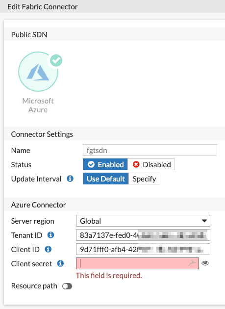 - Copy the newly created client secret value in to the Client secret field in FortiOS.