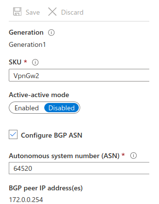 VNet gateway BGP ASN