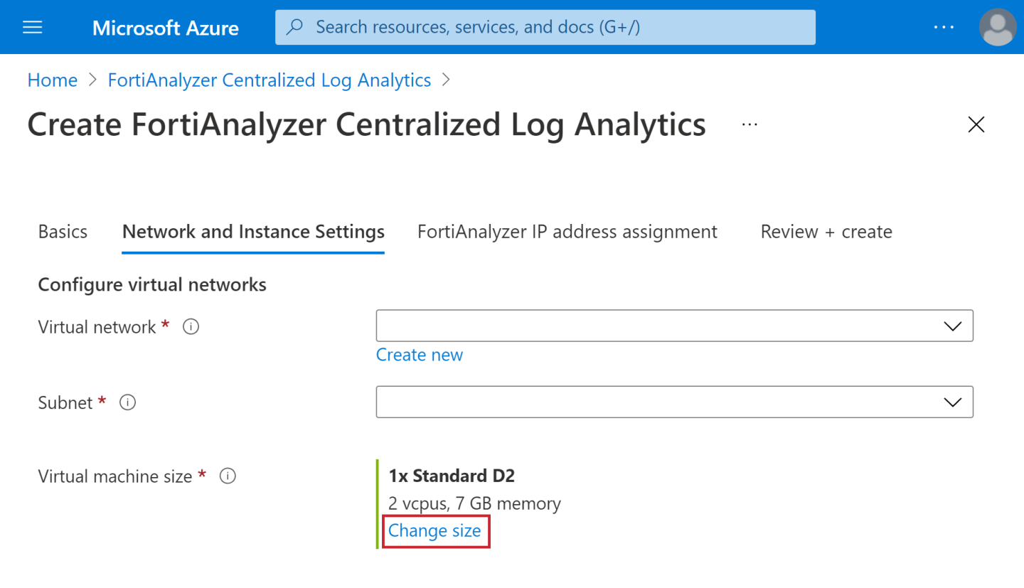 When FortiAnalyzer integration is selected, a new FortiAnalyzer resource will be created in the virtual network to be used by FortiGate Autoscale. As FortiGate Autoscale and the FortiAnalyzer are configured to work with each other, this FortiAnalyzer is not intended to be replaced.