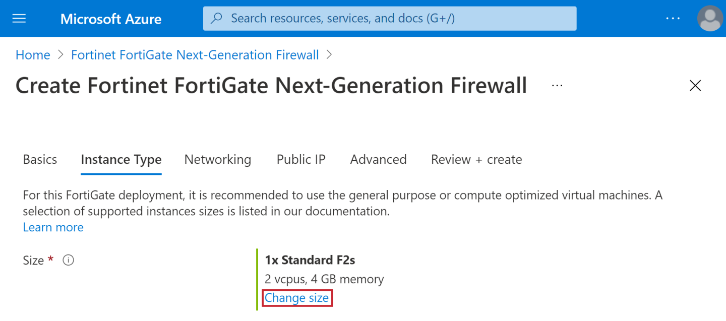 For BYOL VM sizes, users should also match the vCPU capacity of the selected Instance Type with the limit of the FortiGate license. Each license has a limit for the maximum number of vCPU per VM.