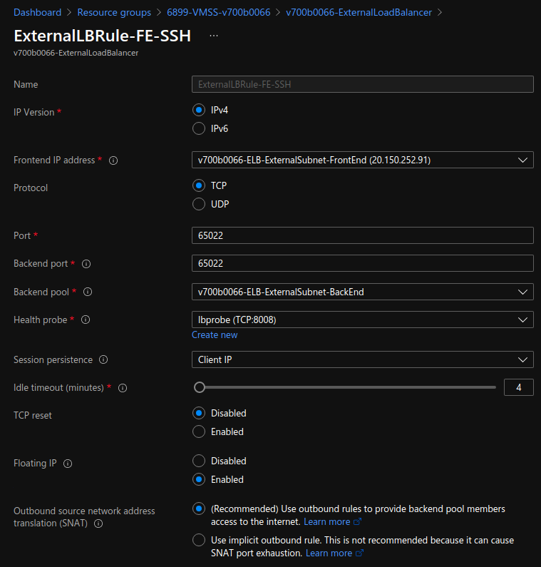 - Configure the ILB rules. Ensure that you configured Session persistence to the client IP address and enabled Floating IP: