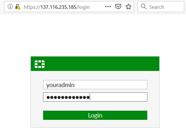 - In a browser, access https://<public IP address>. Enter the admin username and password specified in the ps1 file to log in.