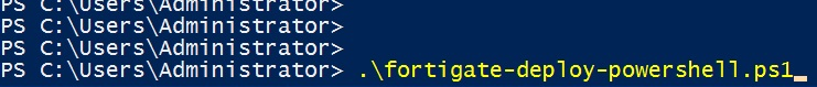 - Run the ps1 file. In this example, the filename is fortigate-deploy-powershell.ps1.