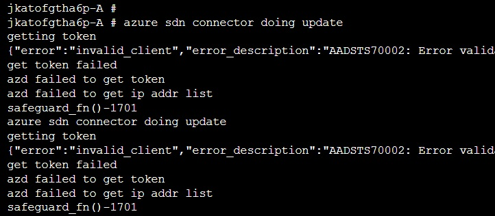 Wait a few minutes. If you did not configure the SDN connector correctly, the CLI displays the following error: