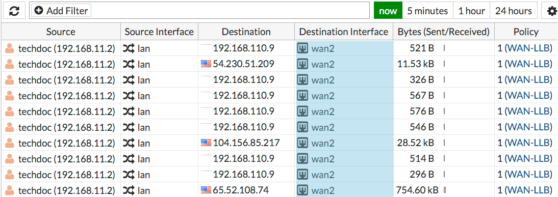 Go back to FortiView > All Sessions and the results should show that traffic is only flowing through wan2, until you enable WAN1 again.