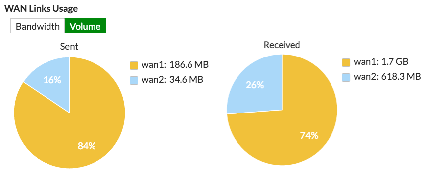 To help analyze the effectiveness of the algorithm selected, the WAN Links Usage graph shows you the volume and bandwidth usage.