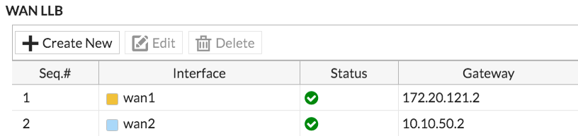 In this example, you will create a WAN link interface that provides your FortiGate unit with redundant Internet connections from two Internet service providers (ISPs). The WAN link interface combines these two connections into a single interface.
