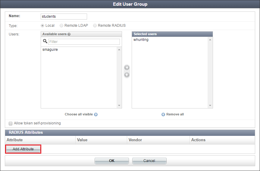 If your configuration involves multiple users, it is more efficient to add RADIUS attributes in their respective user groups, in the next step.