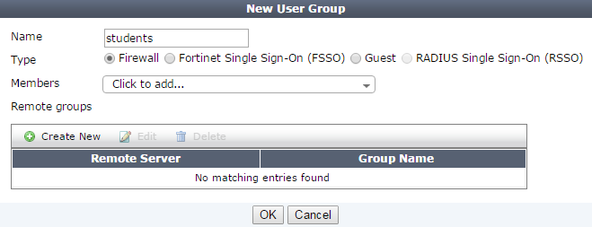 Go to User & Device > User Groups and create two groups named the same as the ones created on the FortiAuthenticator.