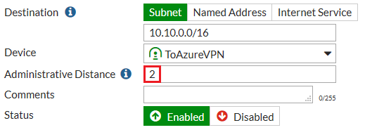 Go to Network > Static Routes and create a new static route forcing outgoing traffic destined to the Microsoft Azure network to flow through the route-based tunnel.