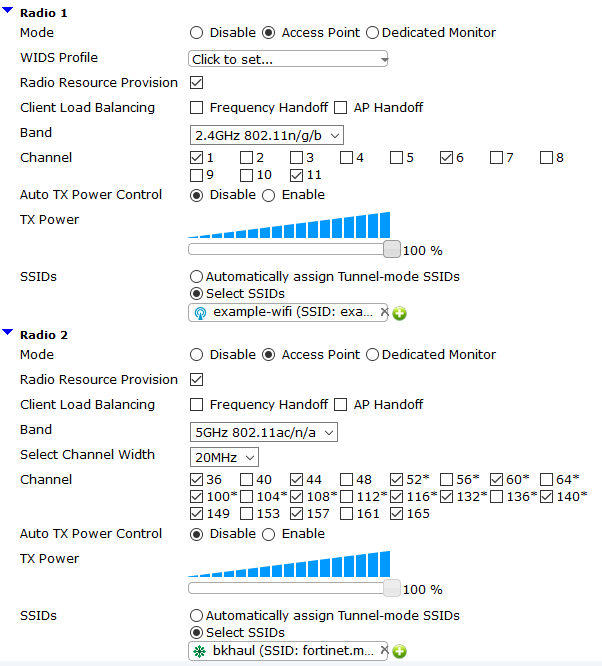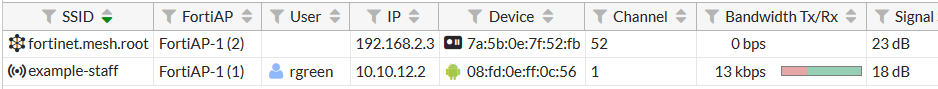 In this example, both FortiAPs provide the example-staff network to clients that are in range.