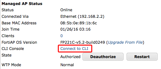 Edit FortiAP-2. Under Managed AP Status, select Connect to CLI.
