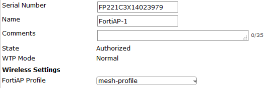 Enter the serial number of the FortiAP unit and give it a name. Select the FortiAP profile that you created earlier.