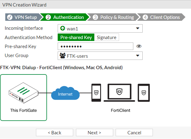 The key must match the same key entered in the wizard on the FortiGate earlier.