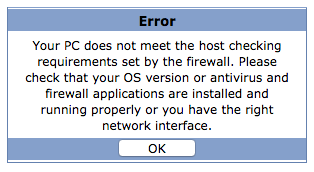 - If a remote device fails the OS or host check, a warning message appears after authentication instead of the portal.