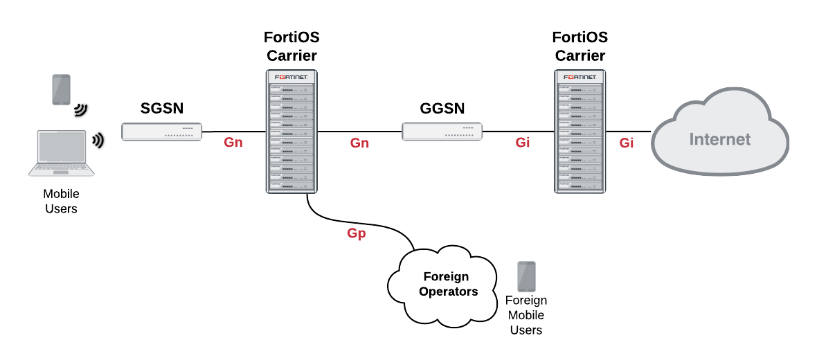 | GGSN (remote) | SGSN (local), WAP gateway, Internet, other external services | Gi, Gp | IP, GTPv1 |