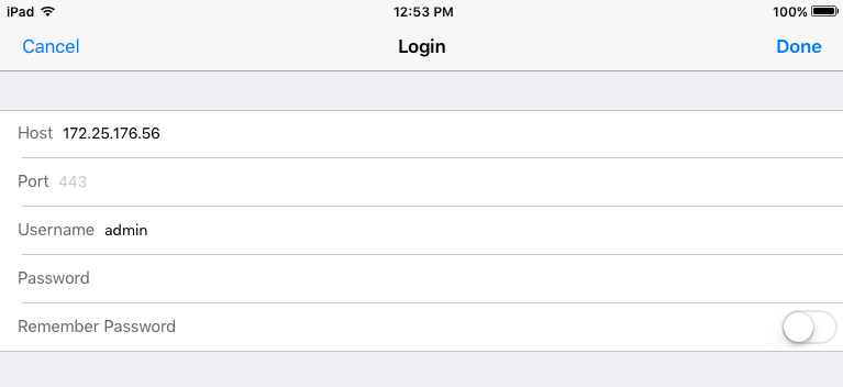 admin) and leave the Password field blank. - You can opt to Remember Password. Tap Done when you are ready.