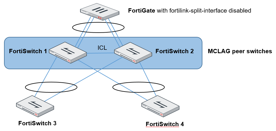 Fortinet recommends the following topologies for managed FortiSwitch units: